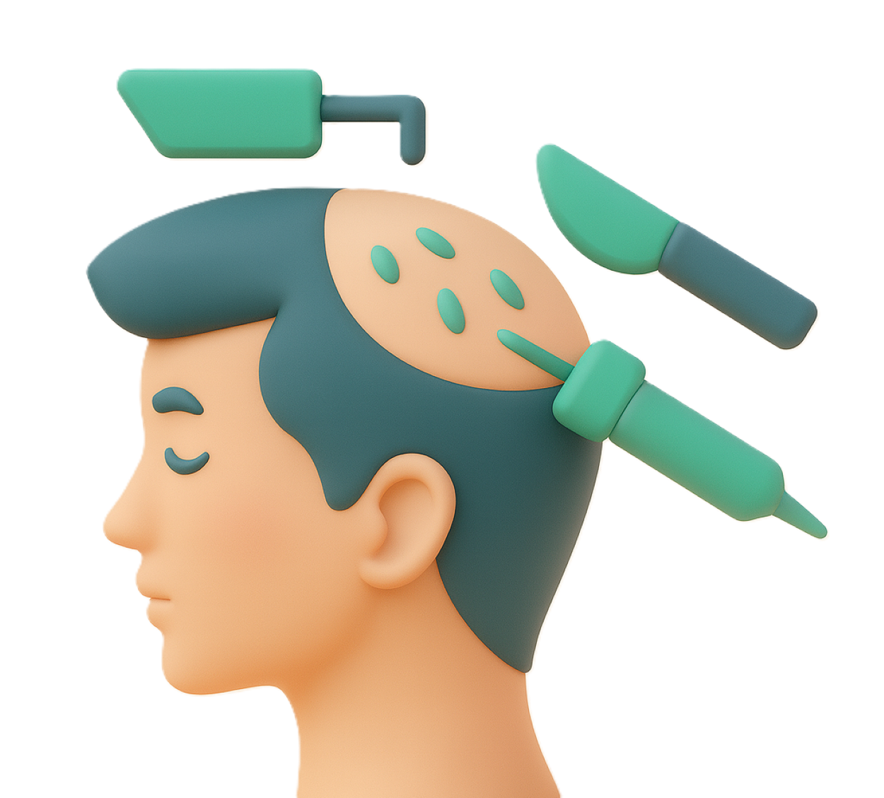 During a hair transplant, hairs are moved from an area of thick growth to bald areas.