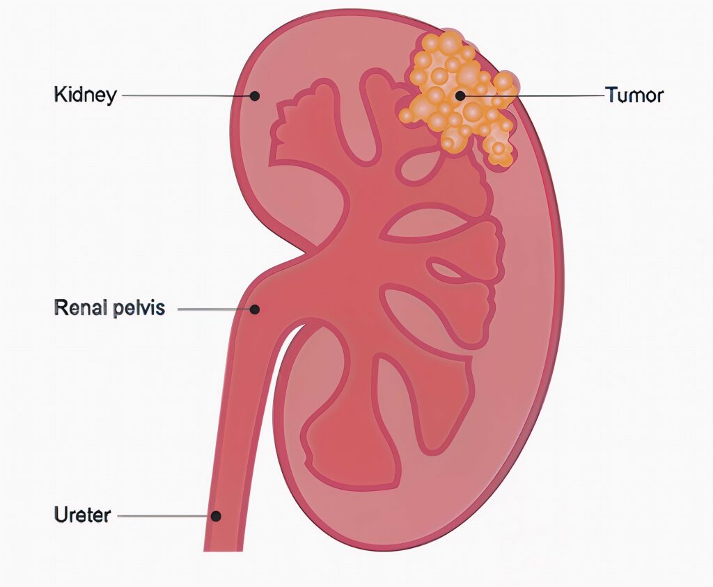 In adults, renal cell carcinoma is the most common type of kidney cancer. Other, less common types of kidney cancer can happen. Young children are more likely to develop a kind of kidney cancer called Wilms tumor.