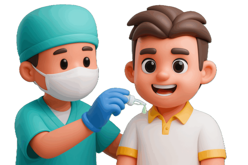 These vaccines are administered using a needle, usually into the thigh or upper arm depending on the child’s age and the vaccine type. Injectable vaccines deliver the vaccine directly into the tissue, helping the body build a strong and effective immune response. This method is used for most routine childhood vaccines such as DTaP, MMR, and Hepatitis vaccines.